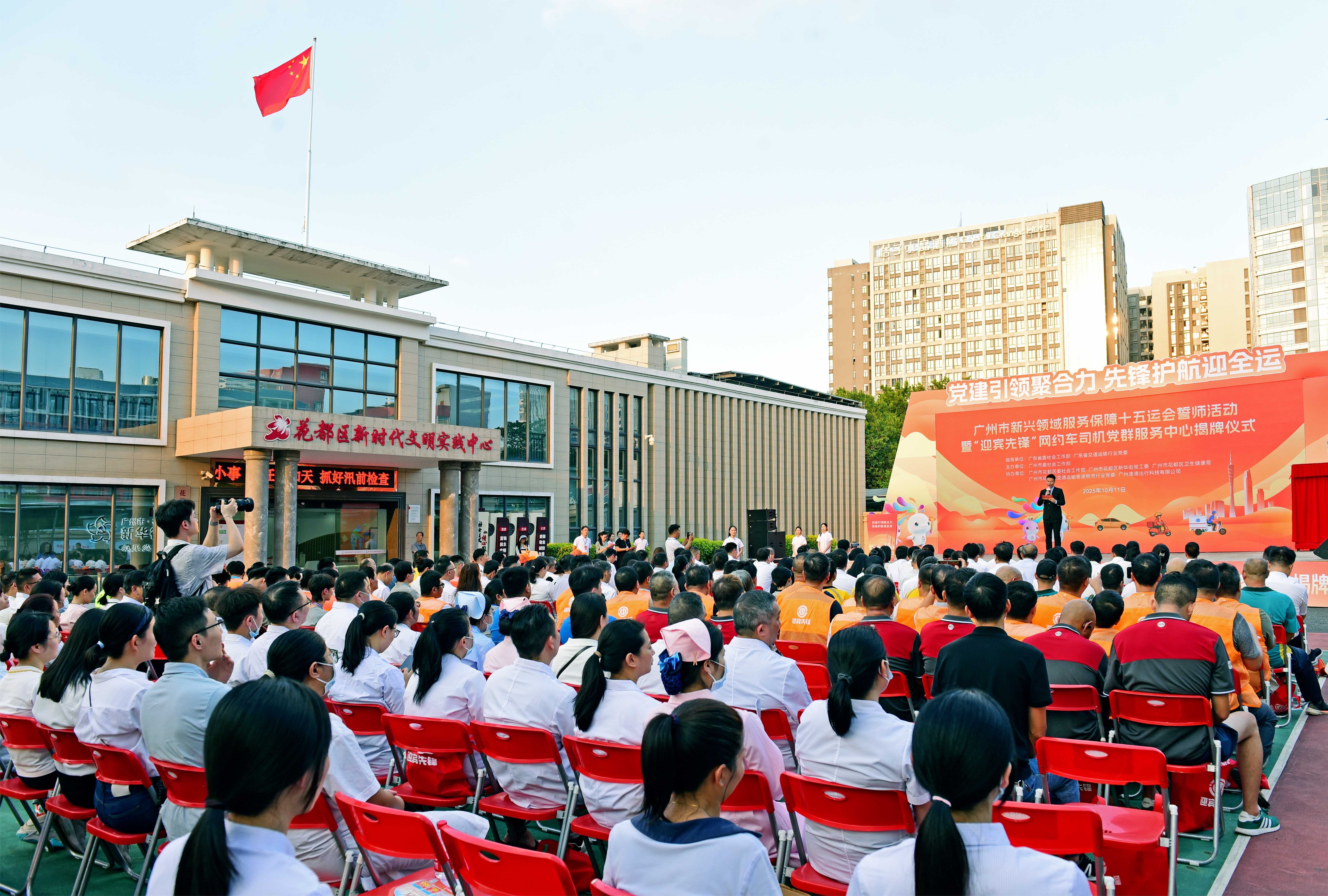 当天,花都区新兴领域正式启动“迎宾先锋‘双十一’”行动,通过《暖心关爱新就业群体“十个一”行动》和《网约车司机党员服务“十个一”标准》双向发力,构建政企服务与新就业群体发展的良性互动生态。