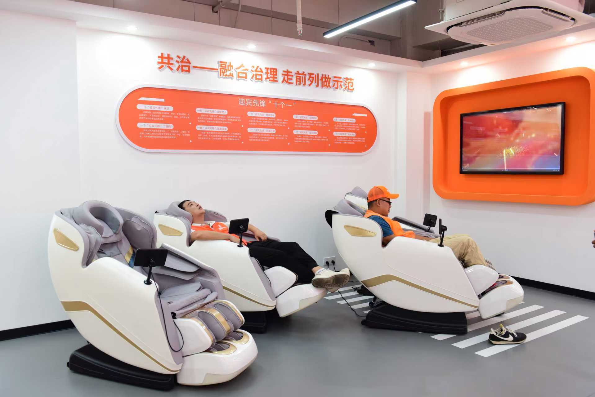 新华街迎宾路党群服务中心负责人谭建明介绍,服务阵地设有主题空间和共享空间,主题空间聚焦司机职业本身,共享空间更加注重解决司机的后顾之忧,设有暖新驿站、暖心书吧和暖心学院,提供休息、充电、雨衣雨伞、应急药箱、共享就餐、取暖纳凉等特色内容,还有充电桩,切实改善司机工作休息环境,真诚欢迎新就业群体的到来。